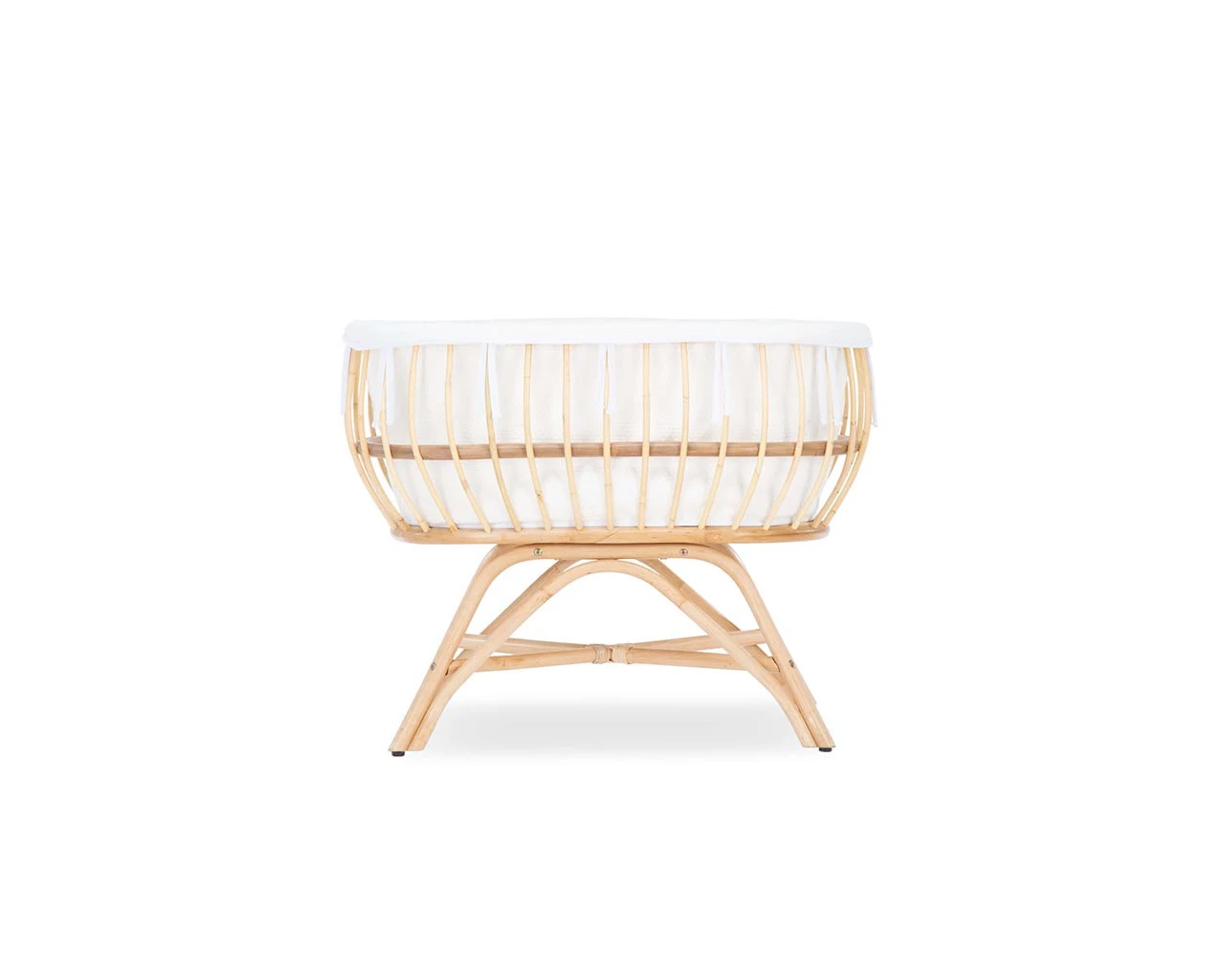 Add a touch of ‘Wow’ to your home with this Boho style crib from our Aria collection. It’s light and open structure creates a tranquil environment for your baby whilst offering a safe and sturdy solid frame which has been hand crafted almost entirely from Rattan. This is a natural material which is extrememly lightweight, so moving the crib around the house is easy and hassle free. A beautiful item which will be the focal point of any room.