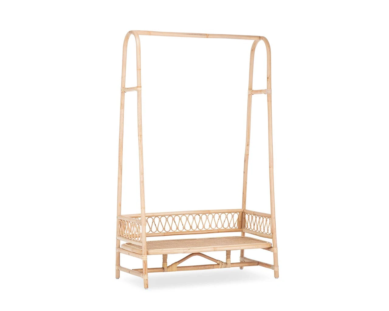 The Aria Rattan hanging rail offers a beautiful boho display for your favourite baby items. A hanging rail offers space for clothing and the shelf below is perfect for shoes and smaller items. It’s design is lightweight and airy and it’s perfect for smaller spaces.