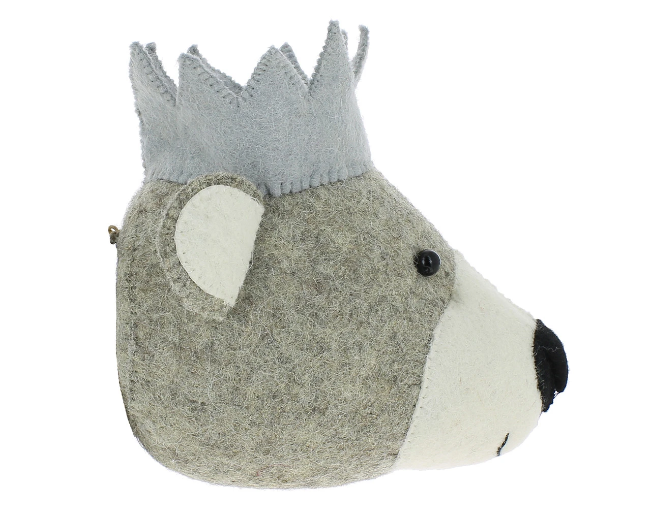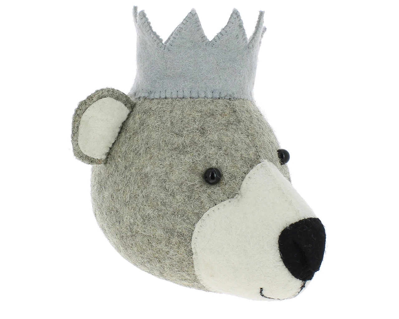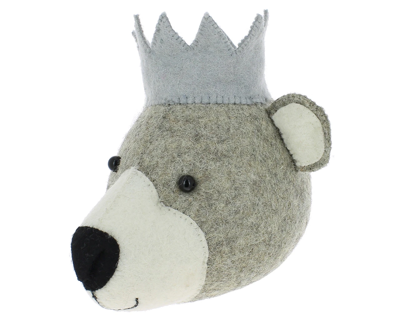Add a fun and modern touch to your walls with this super cute bear animal head. With his little black eyes and jaunty crown this bear would be the prefect decorative addition to the bedroom or nursery. Each head is unique as they are hand crafted using traditional methods and natural materials.