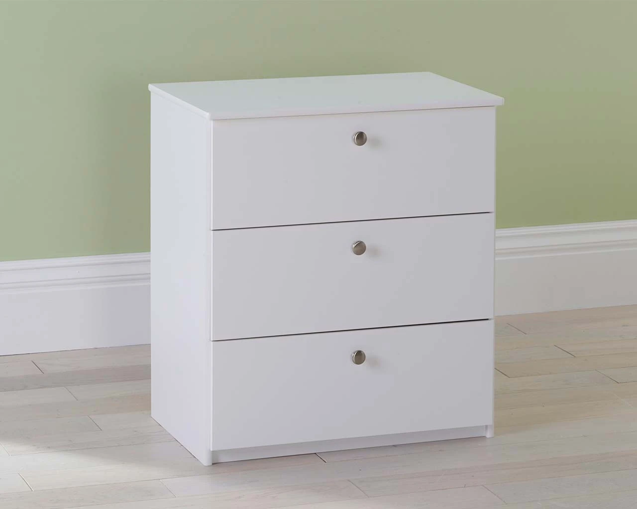 The contemporary Bloc Chest of Drawers offers spacious storage across 3 drawers. Great for storing clothes, games, bedding or trinkets. The metal runners make it robust and the stylish silver metal handles finish it off perfectly. A stylish stand alone piece of furniture or will fit perfectly under the Bloc Midsleeper or High Sleeper to optimise bedroom space.
