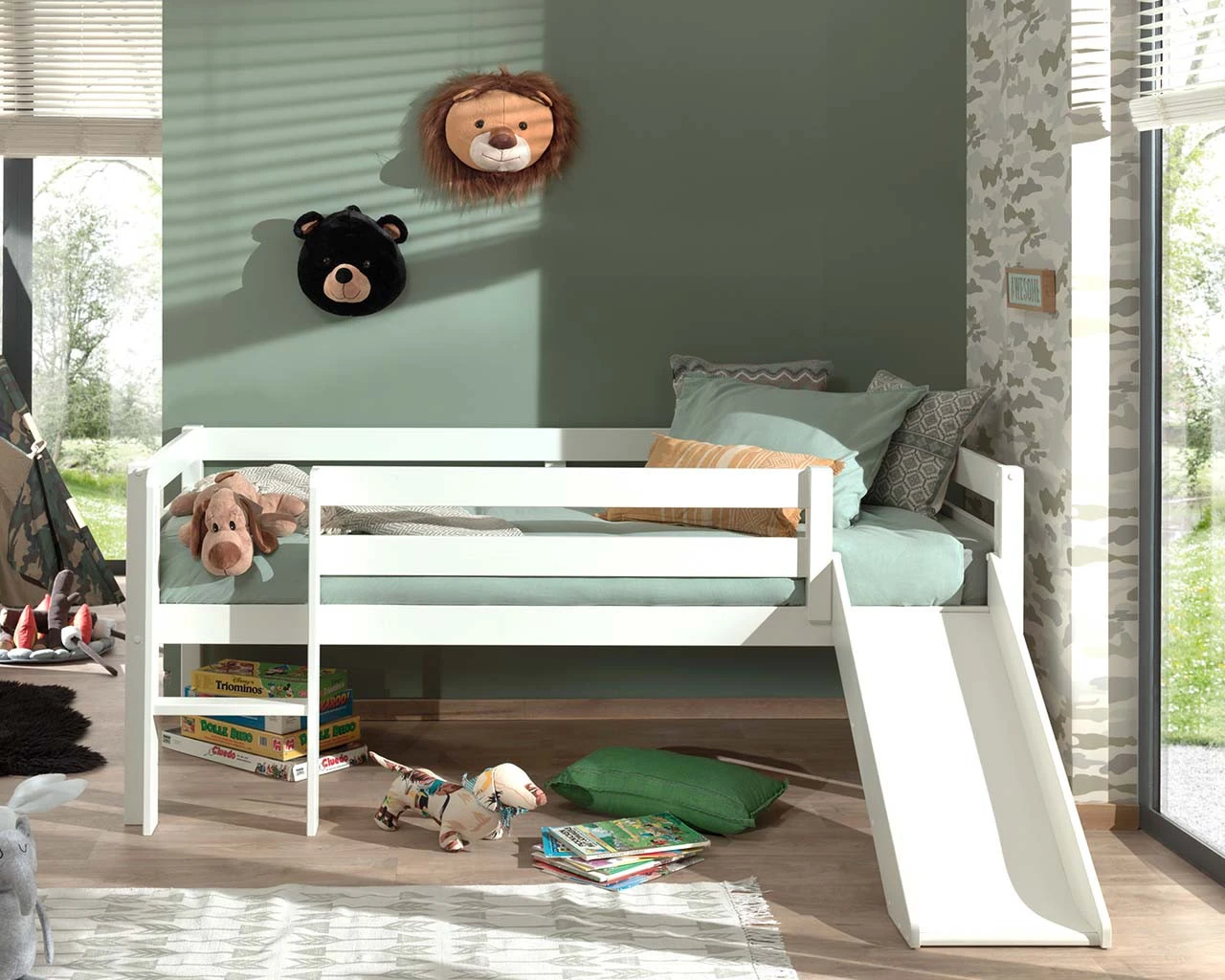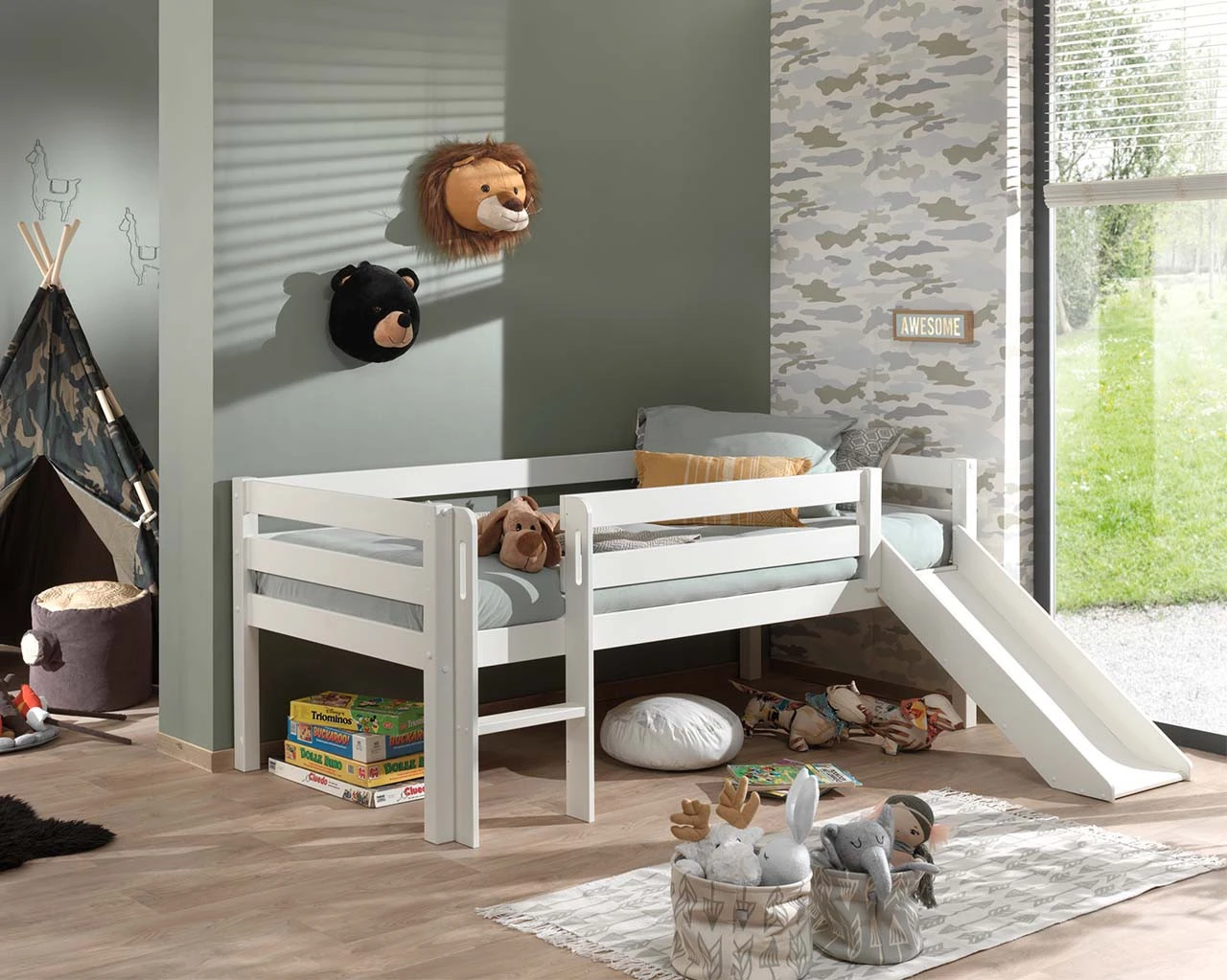 What a wonderfully fun way for your child to start each day… by sliding into it! Encourage play with this fun addition to your little ones bedroom, and with it’s lower height compared to most standard midsleeper beds you can feel rest assured they are safe and sound. The Breeze Low Midsleeper bed is also built from strong and sturdy solid Scandinavian pine meaning it will withstand the wear and tear of playtime. Perfect for smaller children, with a shorter ladder and lower height this bed is ideal for their first ‘big’ bed. Pair this bed with the Breeze storage boxes (Set of 2) which slot perfectly in place underneath. Part of the popular Breeze collection also available in Grey.