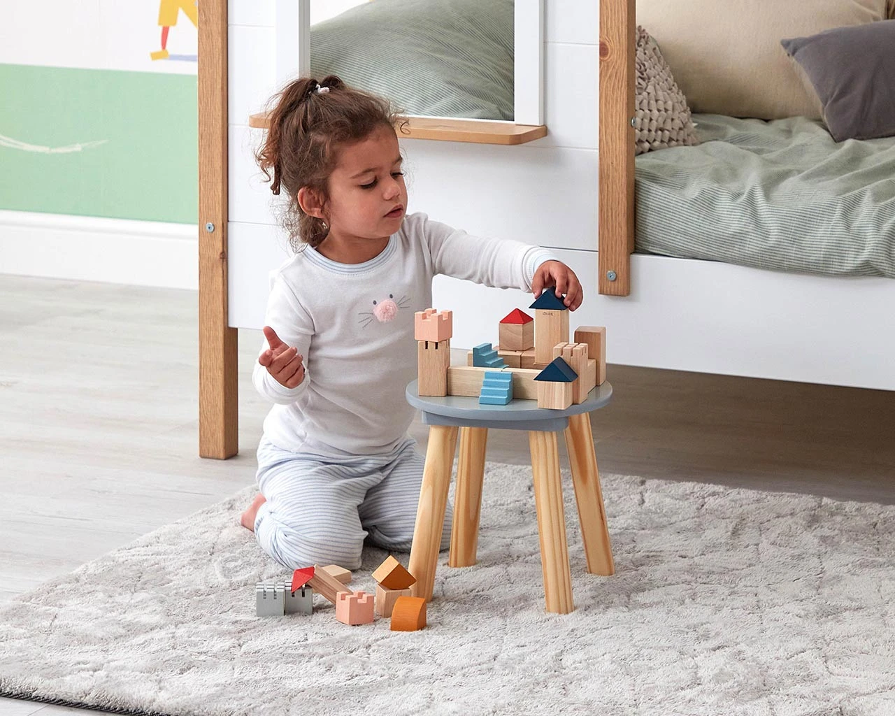 Great creative and start building! These wooden bricks in a mixture of colours and natural wood come in a range of shapes perfect for creating a variety of buildings or patterns. The set contains 30 pieces in 10 different shapes, including stairs and rooftops. These classic building blocks will be played with again and again to create endless imaginative play. Made from sustainable rubber wood, organic colour pigment and water-based dyes, this toy is safe for children and environmentally friendly.