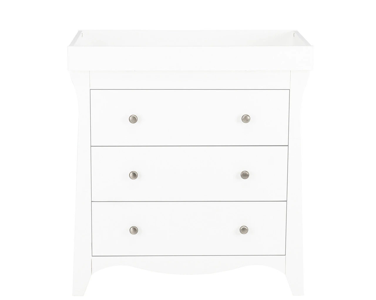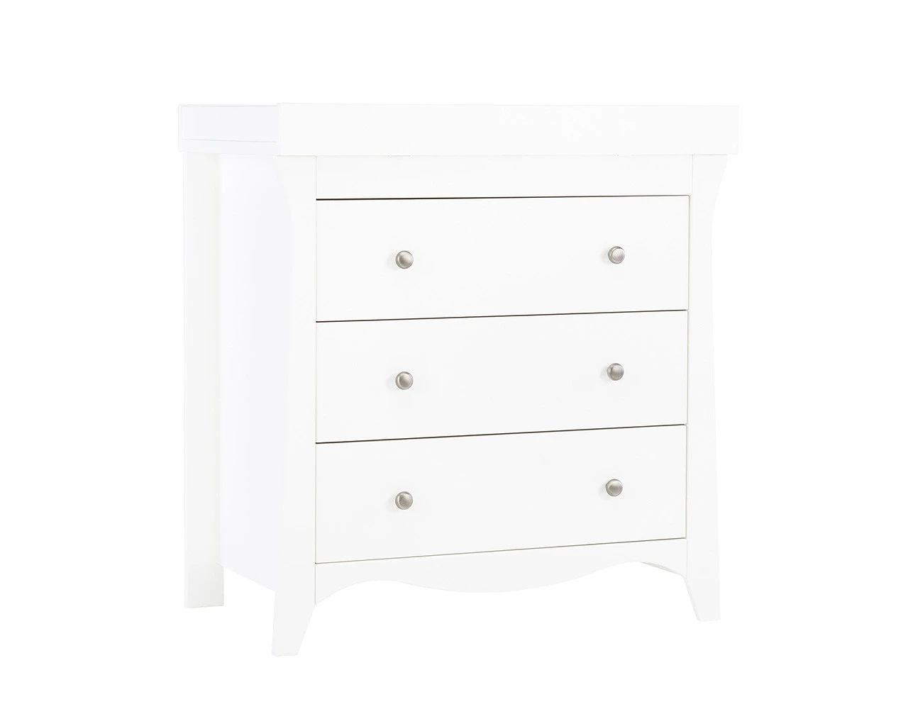 Classic in style and functional in design our beautiful Clara three drawer chest with detachable changer is the perfect addition to your Nursery, ideal for helping you stay organised and offering a safe and spacious place for a changing mat to dress your baby with ease. When your little one has outgrown the changer top it can be easily removed transforming the unit into a standard chest of drawers for longevity. Pair with the Clara Cot Bed and Wardrobe to complete the collection.