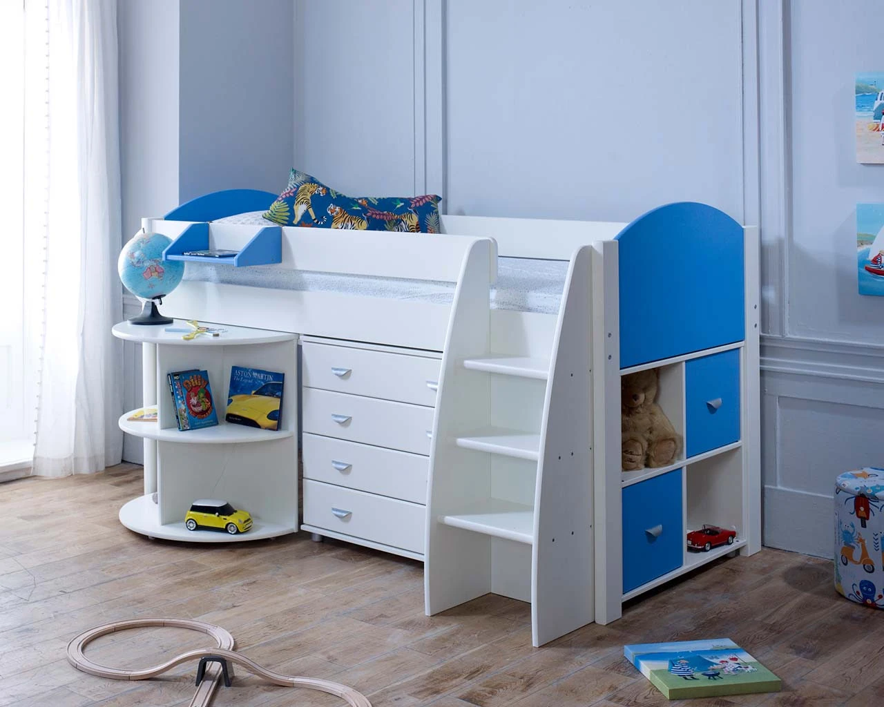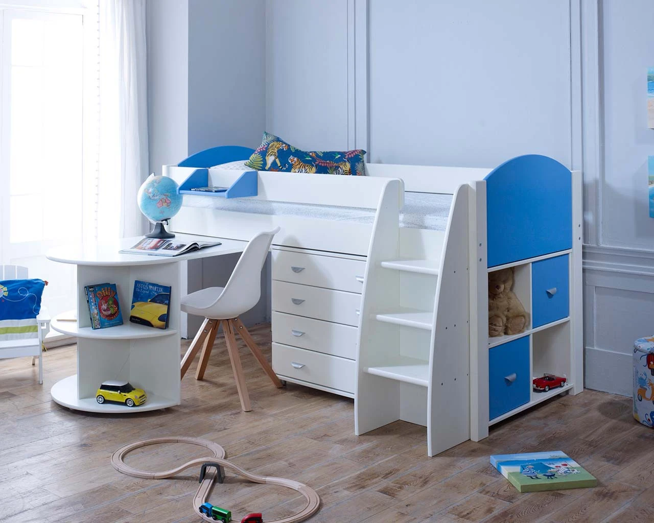 Brilliantly designed, the Eli E Cabin Bed has it all! This wonderful bed comes with a handy pull out desk, chest of drawers and a storage cube with two doors, creating the perfect study and storage solution. What’s more, this fabulous space saver comes with a choice of colour options including white & blue, all white or white & lilac – perfect for adding a splash of colour to your bedroom.