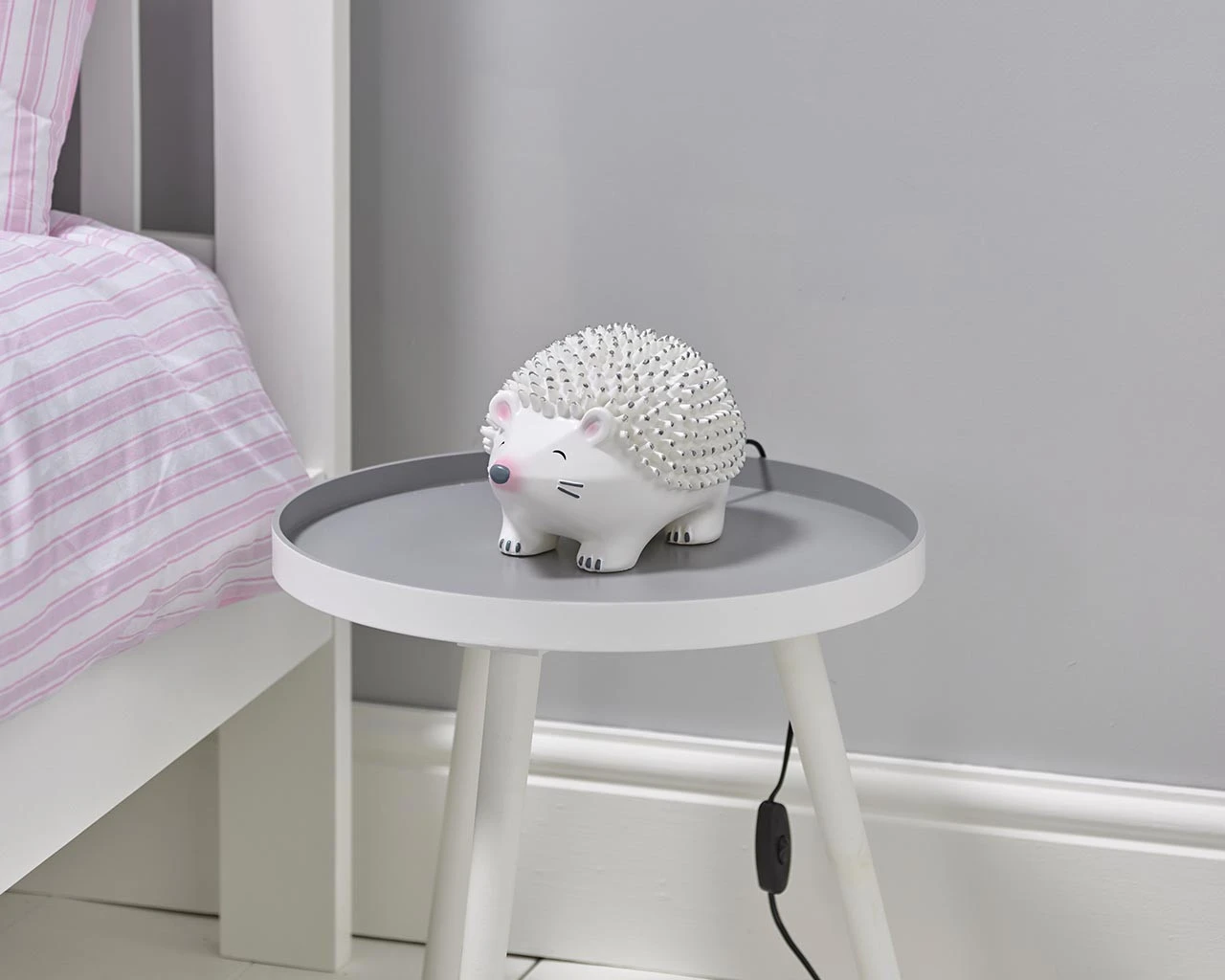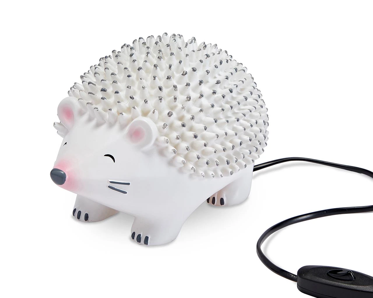 * Easy on / off switchSizeLength 25 cm Width 12.5 cm Height 15 cm What’s Included * LED Hedgehog LightProduct Details We love our cut and friendly Happy Hedgehog lamp. The perfect bedside accompaniment for younger children. Can be used as a night light for children who prefer to have the comfort of light at night time. LED light with black cable and easy to use switch.Assembly Instructions No assembly required