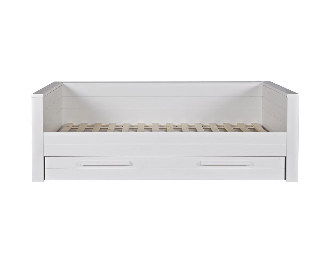 An amazingly stylish and high quality day bed that is a welcoming place to sleep at night and a comfy hang out in the day. It is finished in a uber stylish pebble grey or white brushed pine with a classic tongue and groove effect. You also have the option of adding the magnificent underbed storage drawer which is excellent to store shoes, clothes, linen and toys. Matching furniture available in the NYC Bedroom Collection.