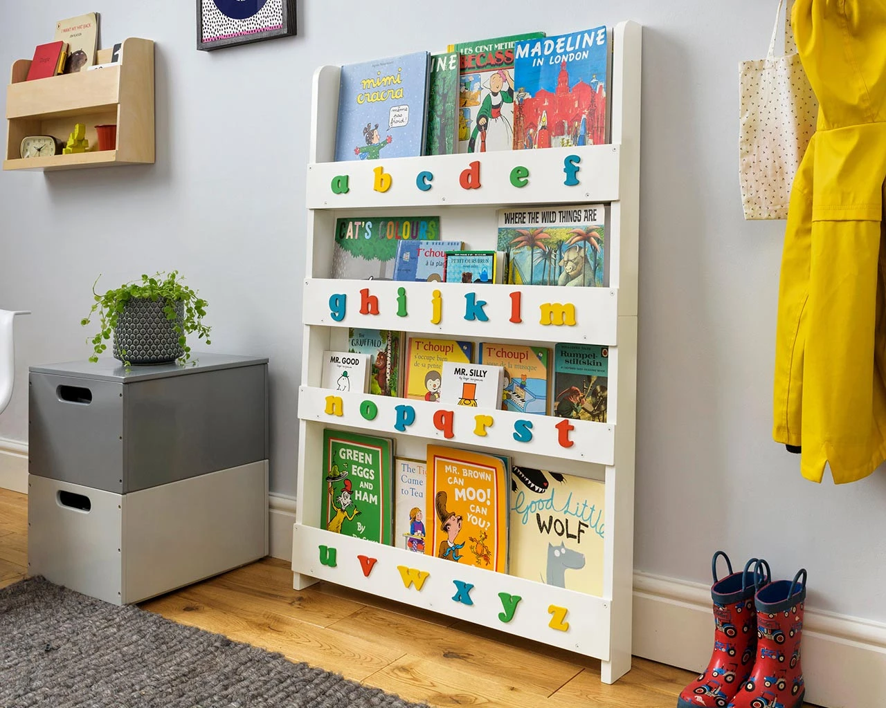 Product BenefitsSizeLength 77 cm Width 7 cm Height 115 cm What’s Included * Open Bookcase with alphabetProduct Details The original Tidy Books children’s bookcase is charming and captivating and the perfect book display and storage for your children’s favourite books. It is made from high quality solid wood and designed to last. 7 year manufacturer’s guarantee.Assembly Instructions This product is designed for Self Assembly. Full instructions are provided.