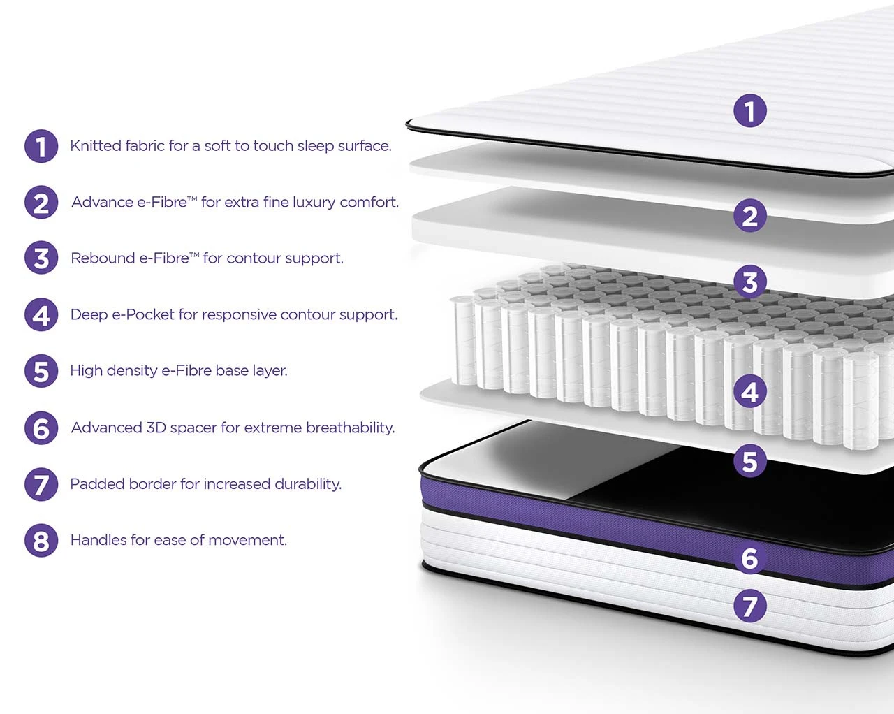 * e-fibre provides contour support and padded border ensures durability
