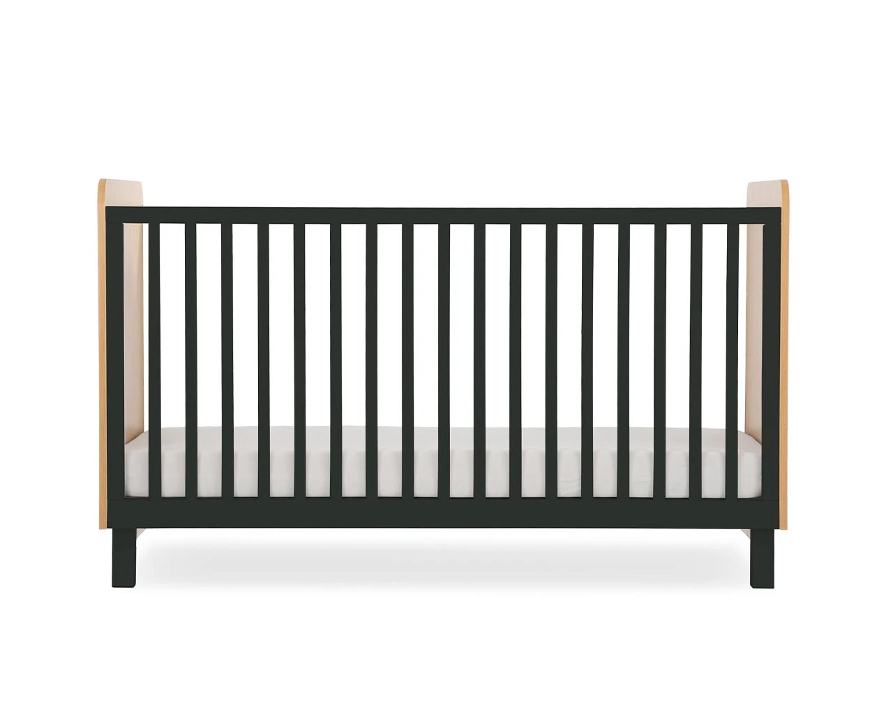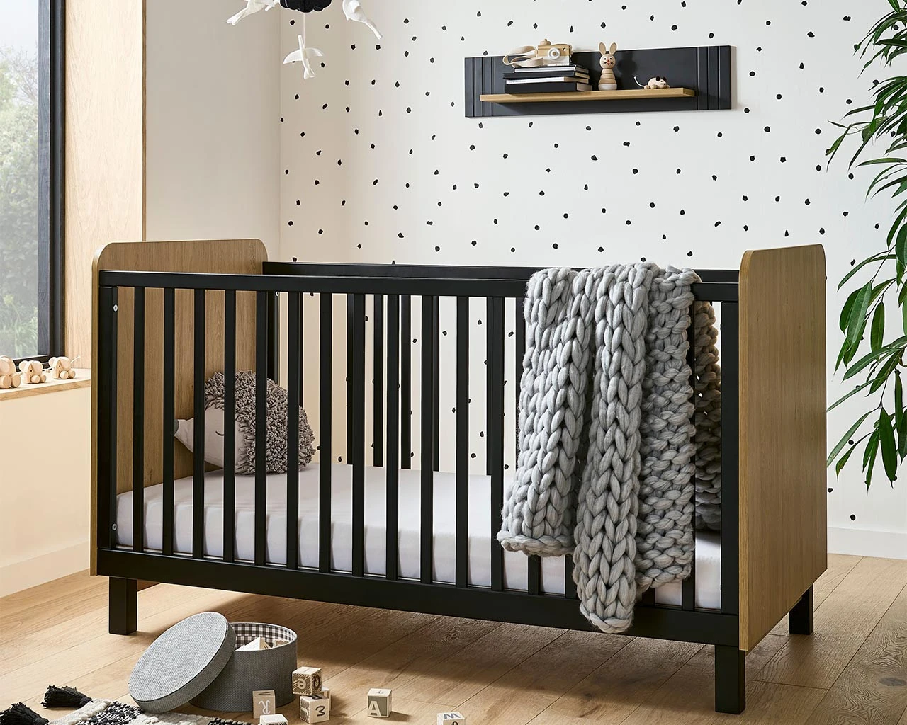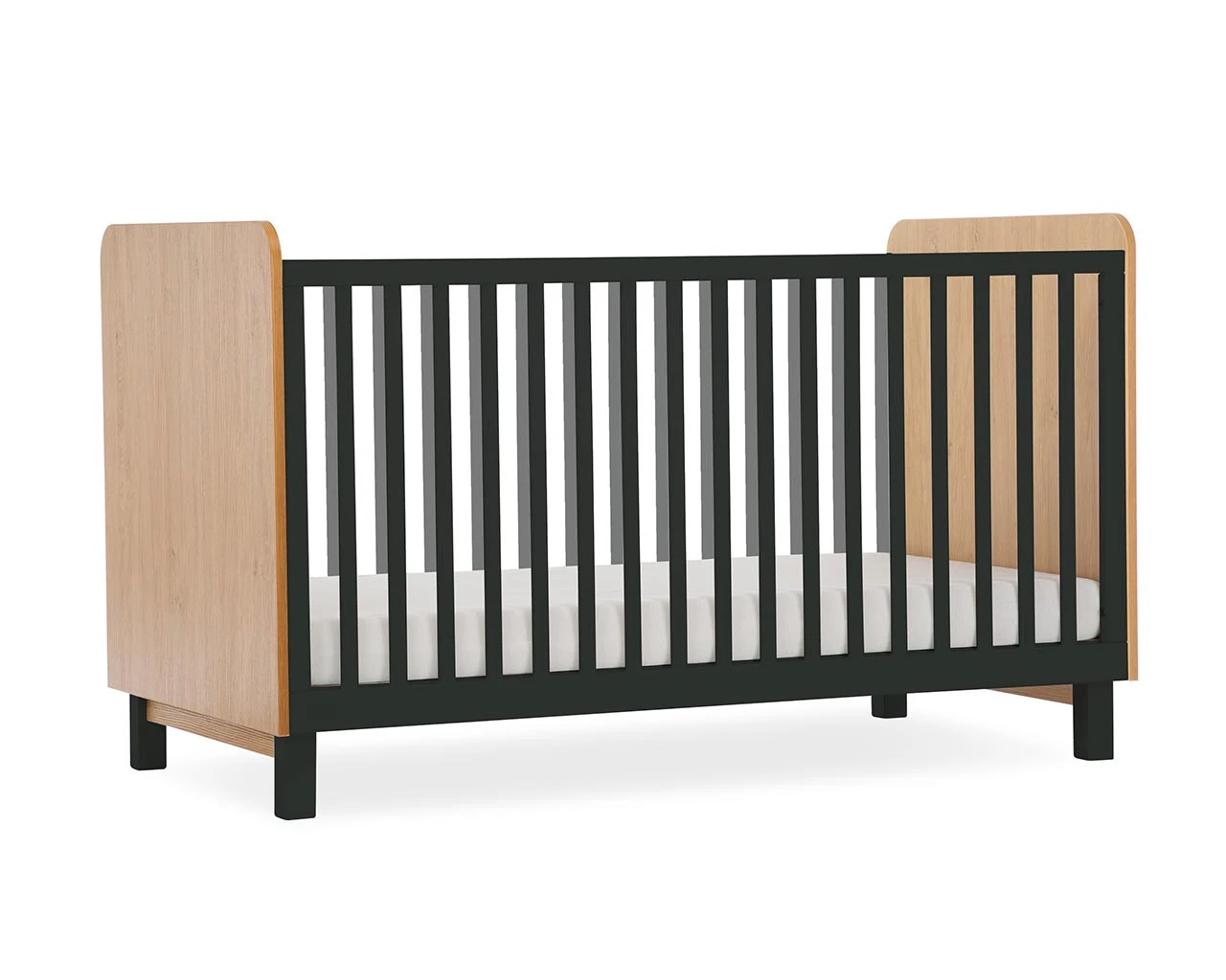 Bold and Beautiful, Rafi is a great contemporary Cot bed which offers simple design. Perfect for minimalist styling that stands out, this Cot comes in a crisp white finish or striking black exterior and is paired with Oak effect contrasting head and foot boards. The Rafi collection also has matching furniture to choose from, so you can complete the look throughout your Nursery.