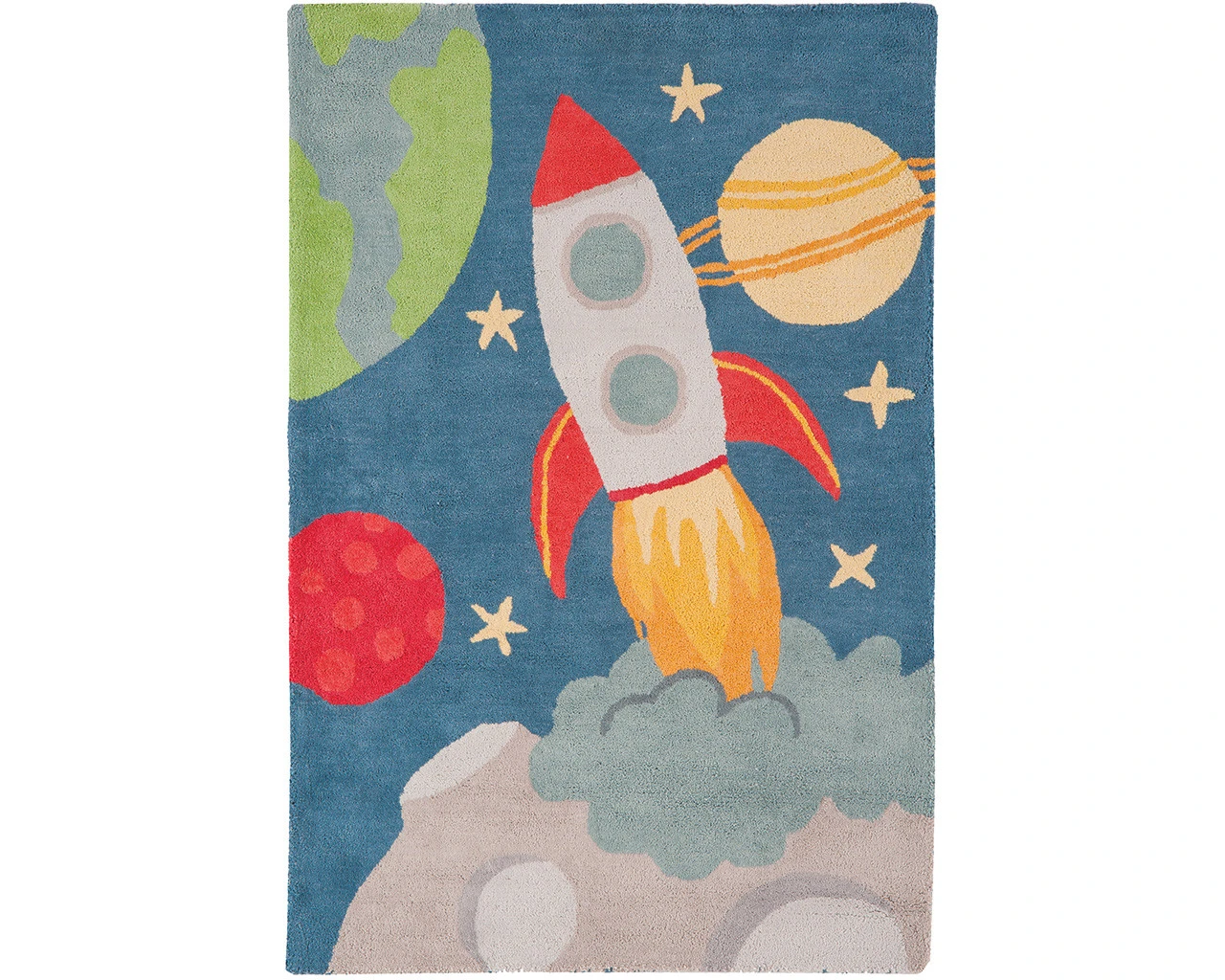 Blast off with the Rocket in Space Rug! Let their imagination soar into space with the super soft and fun Rocket in Space Rug. This fabulous rug is made from 100% cotton and features a space design in warm, bright colours. Perfect for any bedroom or playroom, this rug is the perfect gift!