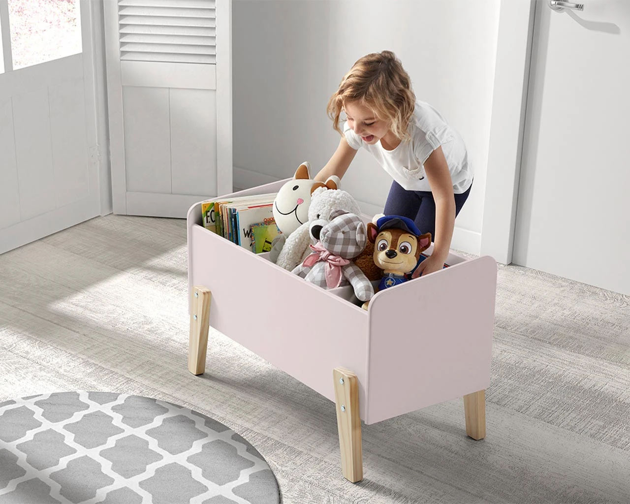 The Sherbert Toybox is a great addition to any bedroom or playroom. With 3 handy compartments you can store toys, books and games in an organised way and certainly off the floor! Finished in a Pink or White lacquer with solid pine legs it is a truly stylish piece of furniture. Match it with the co-ordinating Sherbert bed and Sherbert bedside you can complete the look for a designer bedroom!
