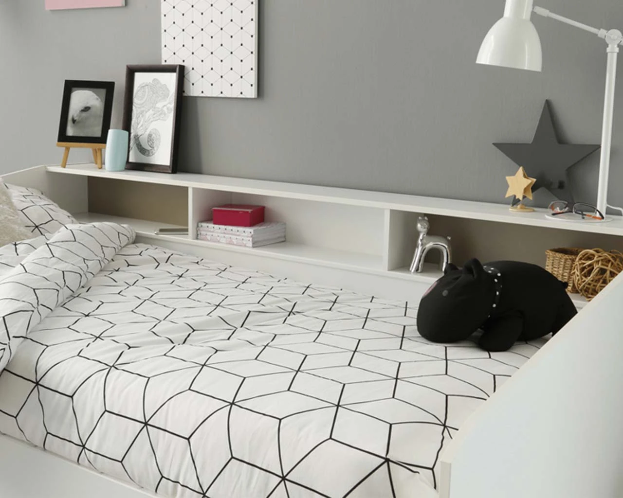The Sleep Day Bed is another favourite from the Parisot range. This beautiful bed is just perfect with it’s wonderful sizeable under bed drawers, unique design and superb shelving space at the back with 4 lovable colours: Pink, Cappuccino, White and Black. It’s a brilliant storage solution for your child’s bedroom or guest room. Finished in a fresh, clean white which goes with almost everything.
