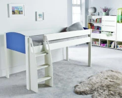 A superb bedroom combination from the Stompa UNO S range includes a wonderful Midsleeper bed and 3 multi cube units, with 4 ‘push to open’ doors included per cube. The stairs are solid with cut out handles and ergonomically designed treads for easy climbing, and with a choice of colour combinations this is a great bedroom solution with plenty of storage to suit the needs of growing children.