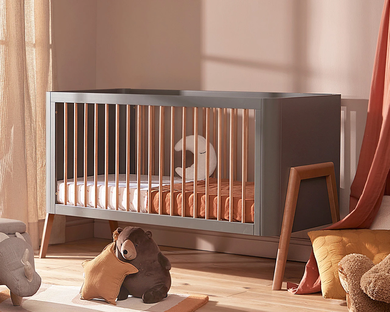 Our Torsten furniture set in Grey / Teak is the perfect addition for a modern nursery setting, it features a Scandinavian design style with soft curved edges and contrasting natural wood details. This 2 piece set includes a cot bed and 3 drawer chest, both are essential additions to complete any nursery. As the cot bed can easily convert into a toddler bed (conversion kit included) it means this collection can grow with your child through their early years, making it practical as well as super stylish.