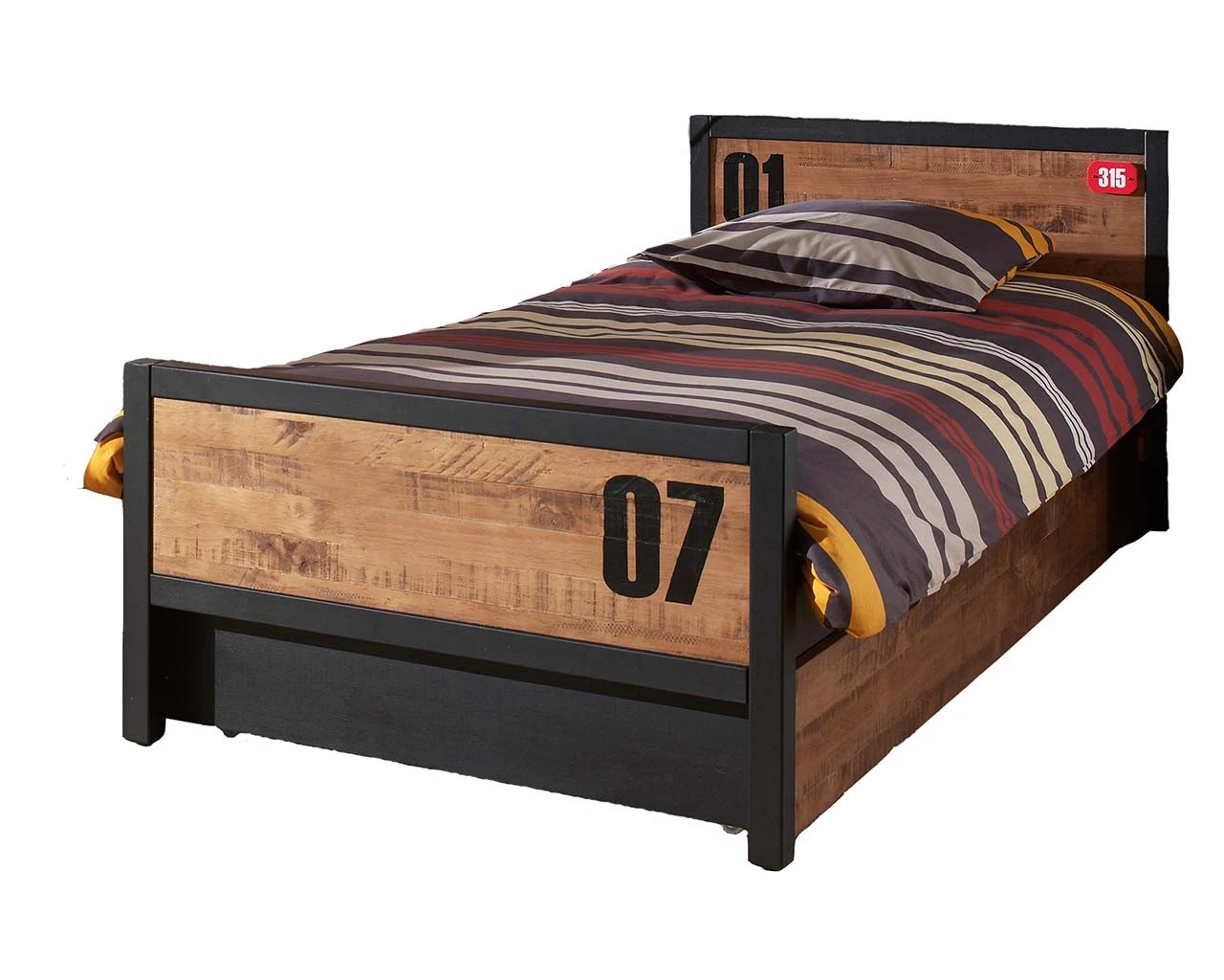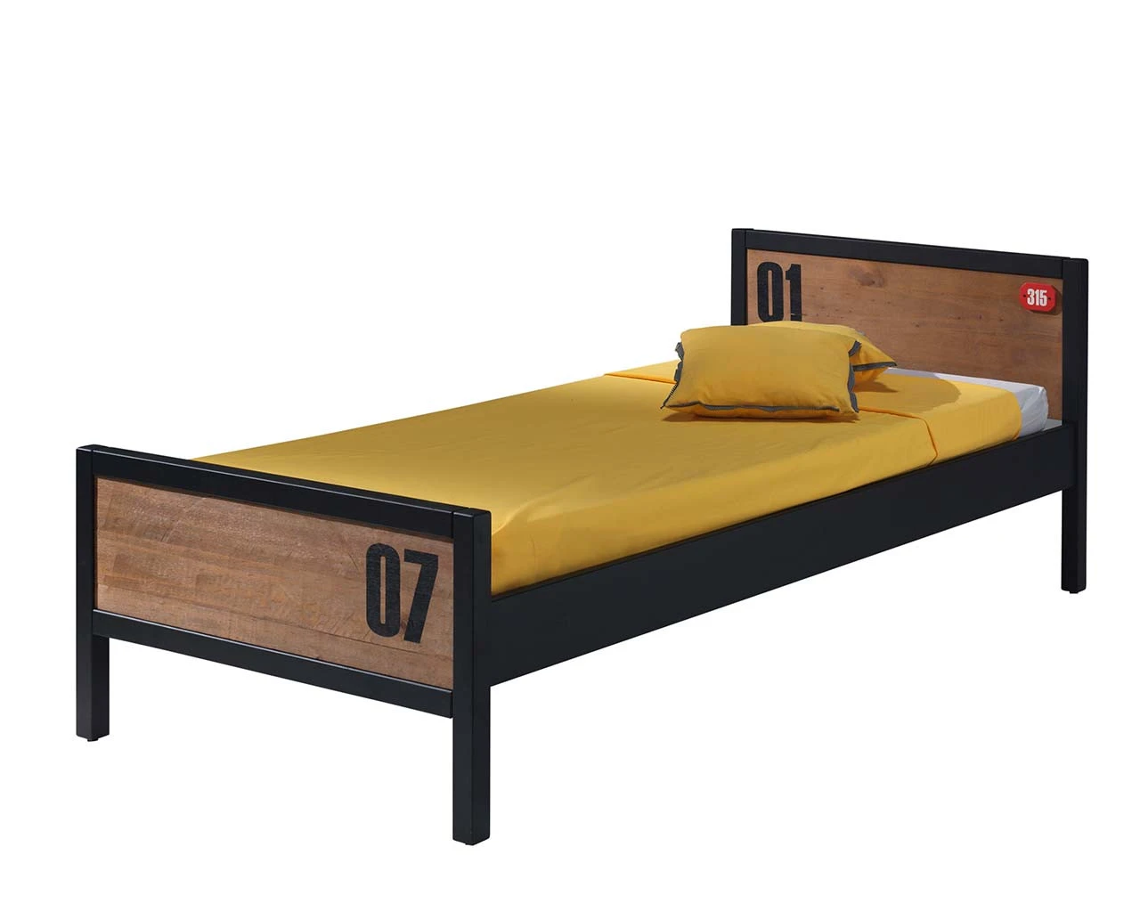 Make a bold statement with our stylish Varsity collection, the headboard and footboard of this single bed is finished in a natural rustic wood effect, against the sleek black frame it will create a cool and contemporary style for any kids bedroom.